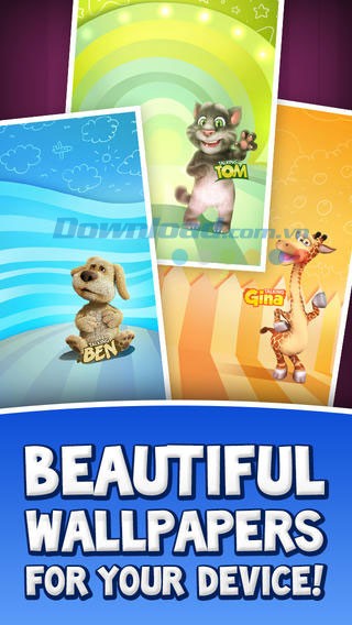 Ngoài việc tương tác với các nhân vật Talking Friends đáng yêu, bạn còn có thể tải về nhiều hình nền đẹp mắt lấy cảm hứng từ những chú chó, mèo hoạt hình dễ thương này.