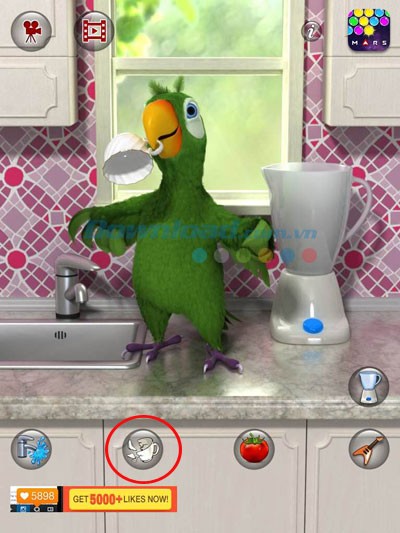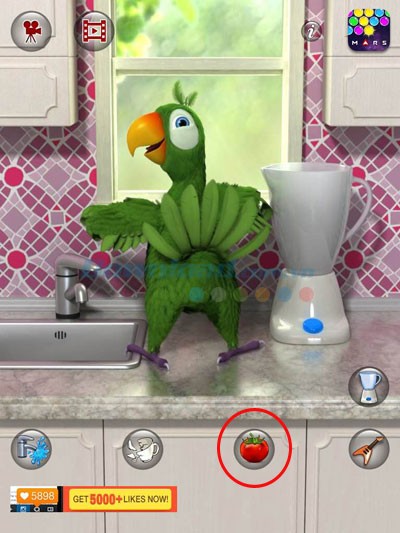 Ngoài ra, bạn có thể chạm vào bụng của Pierre để khám phá những điều bất ngờ. Mèo Tom từ seri My Talking Tom sẽ xuất hiện và trêu chọc Pierre, hoặc bạn có thể nhấn vào nút quả cà chua để ném về phía chú vẹt!