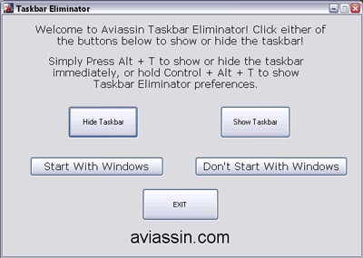 Aviassin Taskbar Eliminator cung cấp một giải pháp đơn giản và hiệu quả để quản lý không gian làm việc trên máy tính của bạn.