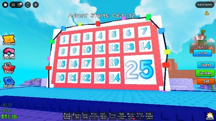 Trong thế giới Plants vs Brainrots, người chơi có cơ hội thu thập các vật phẩm trang trí Giáng Sinh hàng ngày thông qua việc tương tác với Advent Calendar. Mỗi khi mở, một vật phẩm trang trí ngẫu nhiên cùng các phần thưởng đi kèm sẽ được trao cho người chơi. Sự kiện Advent Calendar chính thức khởi động vào 21 giờ ngày 1 tháng 12 năm 2025 và tiếp diễn suốt mùa lễ hội Giáng Sinh.