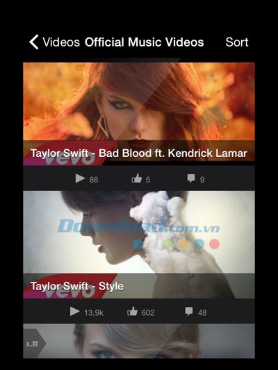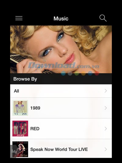 Ví dụ, trong mục Music, bạn có thể thưởng thức toàn bộ các ca khúc do Taylor Swift sáng tác và trình bày, được sắp xếp theo thứ tự từ album mới nhất đến album cũ nhất.