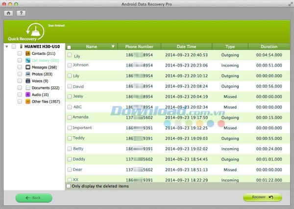 Chế độ này giúp quét nhanh các dữ liệu như danh bạ, nhật ký cuộc gọi, tin nhắn, hình ảnh,... trên thiết bị Android bị mất trong thời gian ngắn.