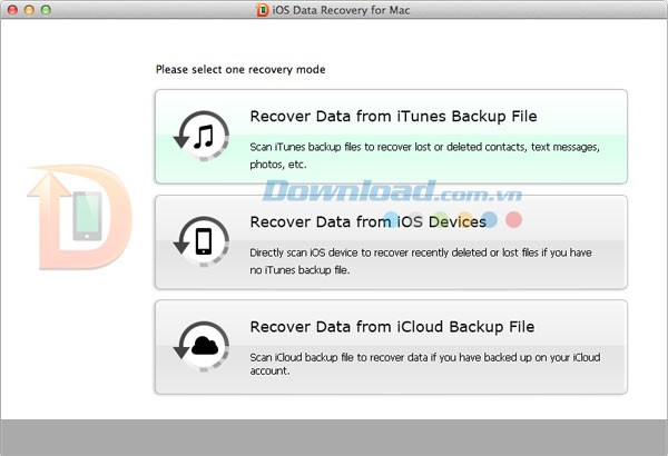 Phần mềm cung cấp khả năng xem trước dữ liệu trước khi phục hồi. Đánh dấu các tập tin bạn muốn khôi phục, sau đó nhấn ""Phục hồi"" và chọn thư mục lưu trữ cho tin nhắn, danh bạ, ghi chú, hình ảnh, v.v.