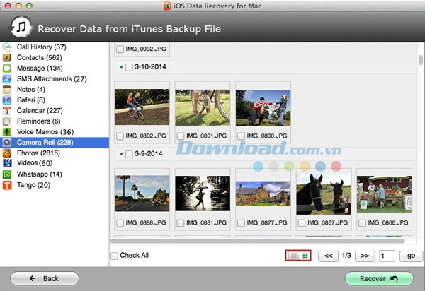 Dữ liệu trong Camera Roll, các file đính kèm SMS và video sẽ được sắp xếp theo thời gian, giúp bạn dễ dàng tìm kiếm dữ liệu mong muốn.