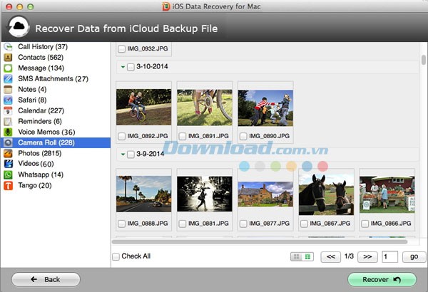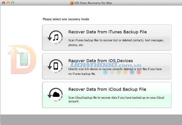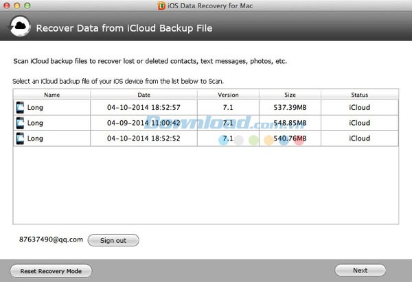 Sau khi đăng nhập, chương trình sẽ liệt kê tất cả các thiết bị đã được sao lưu với tài khoản iCloud này. Nhấn nút Download để tải file sao lưu của thiết bị, sau đó chọn file và nhấn ""Bắt đầu"".