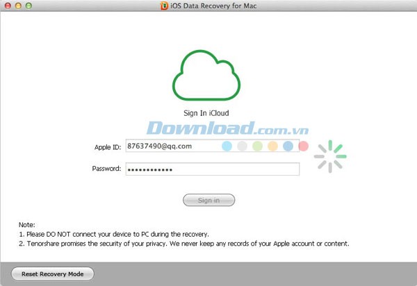 Chọn ""Phục hồi từ iCloud Backup"". Khi giao diện xuất hiện, nhập thông tin tài khoản iCloud và mật khẩu để đăng nhập.
