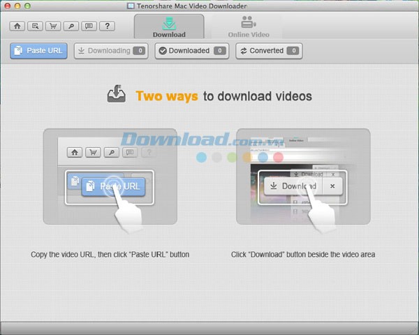 Sau khi hoàn tất việc tải và cài đặt, hãy khởi động chương trình Tenorshare Mac Video Downloader. Người dùng sẽ được cung cấp hai cách thức để tải video từ internet.