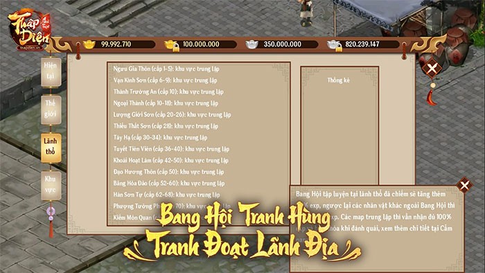 Các bang hội sẽ tham gia vào các cuộc tranh hùng, đối kháng với các bang hội khác. Bên cạnh những đặc quyền riêng, game thủ còn có cơ hội sát cánh bên đồng đội trong các trận chiến giành lãnh địa và giao lưu với người chơi từ các máy chủ khác.