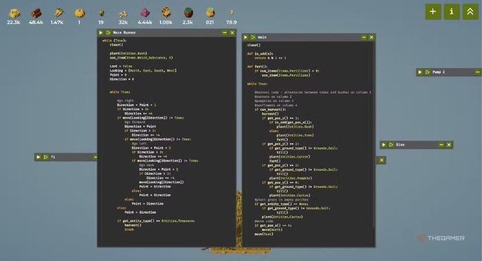 Do đó, người chơi cần phải viết các đoạn mã lệnh ngày càng phức tạp và tinh vi để đảm bảo quá trình vận hành trang trại diễn ra một cách hiệu quả và suôn sẻ.