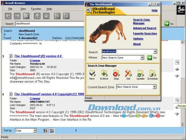 Bạn có thể lựa chọn quét toàn bộ ổ cứng và chỉ định các loại file mà chương trình hỗ trợ. Sau đó, The Sleuthhound! sẽ tiến hành quét và lưu trữ thông tin về tiêu đề, nội dung của tất cả các file đã quét vào một cấu hình chung.