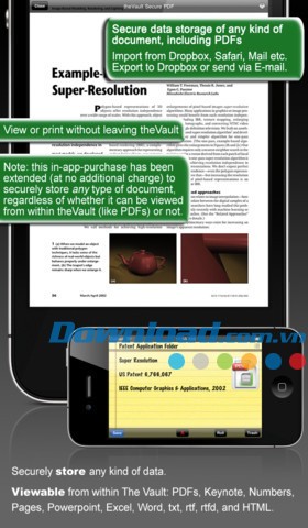 Phiên bản trả phí mở rộng khả năng lưu trữ, cho phép bạn bảo vệ an toàn mọi loại tài liệu nhận được qua email, trình duyệt Safari, Dropbox hoặc iTunes.