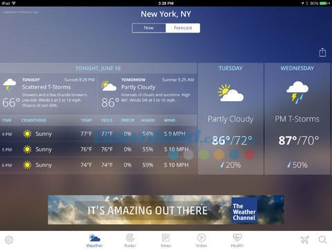 Tải xuống The Weather Channel App cho iPad miễn phí để luôn cập nhật các thông tin thời tiết mới nhất nhờ vào hệ thống dự báo đáng tin cậy. Ứng dụng cung cấp khả năng dự báo thời tiết toàn cầu, bao gồm cả các thành phố lớn nhất trên toàn thế giới.