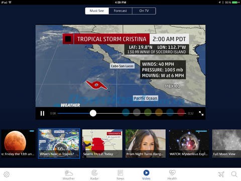 Tin tức thời tiết: Từ các cơn bão lớn đến các hiện tượng thời tiết độc đáo, người dùng The Weather Channel App luôn được cập nhật những tin tức mới nhất, kèm theo hình ảnh và video minh họa sinh động.
