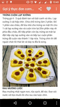 Thực đơn mỗi ngày giống như một mạng xã hội thu nhỏ dành cho những người yêu thích công việc bếp núc. Tại đây, bạn có thể khám phá vô vàn hương vị món ăn khác nhau, những công thức nấu ăn đơn giản, giàu dinh dưỡng và tốt cho sức khỏe. Ứng dụng cũng cung cấp các món ăn nhanh, dễ làm hoặc những gợi ý cho các dịp đặc biệt trong năm.