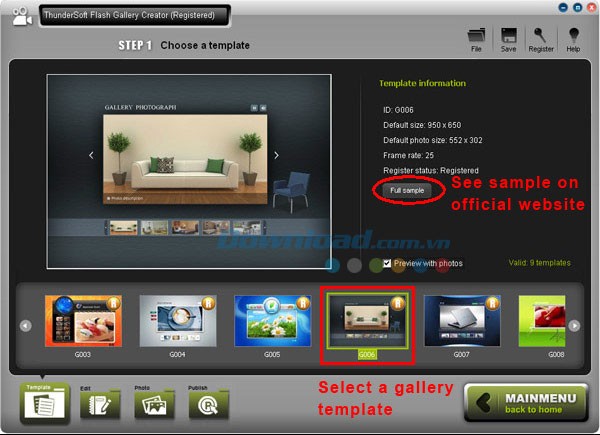 Điểm nổi bật của ThunderSoft Flash Gallery Creator nằm ở khả năng cung cấp đa dạng các template được thiết kế sẵn, mang phong cách chuyên nghiệp. Điều này giúp tiết kiệm thời gian và công sức cho người dùng trong quá trình tạo dựng thư viện ảnh.