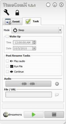 Sau khi thiết lập điều kiện thực hiện tác vụ, bạn chuyển sang thẻ Task để lựa chọn tác vụ cần thực hiện. Các tác vụ mà chương trình cung cấp bao gồm: Lock Computer (khóa máy tính), Shutdown (tắt máy tính), Sleep (cho máy tính ở trạng thái nghỉ), Hibernate (đặt máy tính vào trạng thái ngủ đông), Log Off (đưa máy tính về màn hình đăng nhập), Turn Off Display (tắt màn hình), Run File / Open URL (mở một tập tin hoặc trang web). Để mở một tập tin hoặc trang web, bạn nhấn vào biểu tượng và chọn tập tin hoặc nhập địa chỉ web vào ô File / URL.