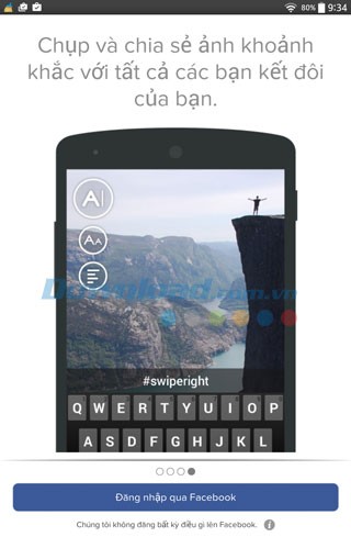 Để bắt đầu sử dụng Tinder, bạn cần đăng ký thông qua tài khoản Facebook . Quá trình này bao gồm việc tải lên một vài hình ảnh, viết giới thiệu về bản thân và chia sẻ sở thích cá nhân. Bạn hoàn toàn có thể thay đổi ảnh hoặc thông tin giới thiệu của mình.
