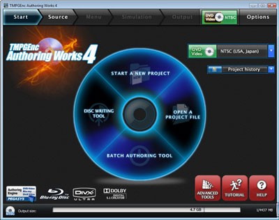 Từ giao diện chính của chương trình, tại thẻ START, hãy đảm bảo lựa chọn DVD Video NTSC (USA, Japan) ở hộp góc trên bên phải. Sau đó, nhấn nút START A NEW PROJECT để bắt đầu một dự án mới.
