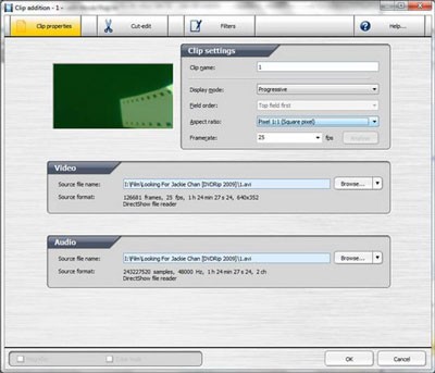 Trong cửa sổ Clip addition xuất hiện, bạn có thể giữ nguyên các thông số video mặc định và nhấn nút OK để tiếp tục.