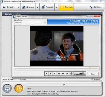 Lưu ý rằng, với phiên bản dùng thử của TMPGEnc Xpress 4.7.3.292, logo của chương trình sẽ xuất hiện trên phim trong khoảng 10 giây cứ sau mỗi 5 phút.