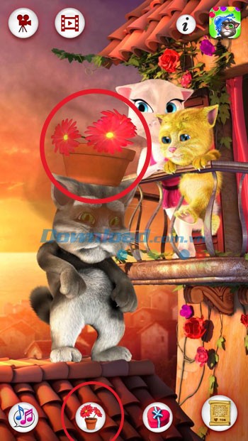 Nhấn vào nút Flower Pot để chứng kiến cảnh Ginger tinh nghịch ném chậu hoa vào đầu Tom.