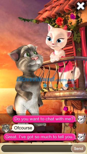 Tương tự như các phiên bản động vật nhại tiếng người khác, người chơi có thể tương tác với Tom và Angela bằng cách chạm, chọc, cù léc họ.Ứng dụng có khả năng lặp lại chính xác những gì bạn nói bằng giọng nói vô cùng đáng yêu. Thêm vào đó, Tom Loves Angela còn sở hữu tính năng chat độc đáo. Bạn sẽ hóa thân thành Tom và trò chuyện với Angela thông qua những tin nhắn tự động. Hãy khám phá những cuộc đối thoại thú vị của họ!