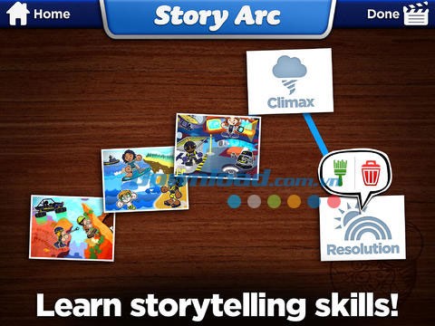 Toontastic for iPad phù hợp với trẻ em từ 5 đến 10 tuổi, giúp các em tạo ra những câu chuyện ảo dựa trên các hướng dẫn cơ bản về cấu trúc truyện, ghi lại lời dẫn truyện thông qua hành động.