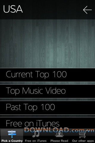 Top 100 – Music for iOS được đánh giá là ứng dụng bảng xếp hạng nhạc xuất sắc nhất dành cho các thiết bị iPhone và iPad.