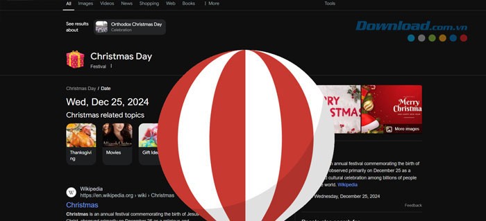 Để lan tỏa không khí lễ hội, Google mang đến một trải nghiệm thú vị. Khi người dùng tìm kiếm các từ khóa như "Christmas" hoặc "Hanukkah", một tiêu đề mang đậm chủ đề sẽ xuất hiện nổi bật trên trang kết quả tìm kiếm.