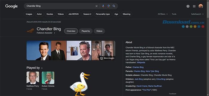 Khi người dùng tìm kiếm tên đầy đủ của các nhân vật chủ chốt, Google sẽ hiển thị biểu tượng đặc trưng của nhân vật đó. Việc nhấp vào biểu tượng này sẽ mang đến những trải nghiệm thú vị, thể hiện rõ nét tính cách của từng người.