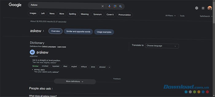 Nếu bạn không ưa chuộng sự cân đối, hãy thử gõ cụm từ Askew vào ô tìm kiếm. Kết quả sẽ là toàn bộ trang web hiển thị bị nghiêng hoặc lệch sang một bên.