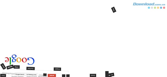 Truy cập trang web google.com, gõ Google Gravity vào ô tìm kiếm và nhấn vào nút I’m feeling lucky. Người dùng sẽ chứng kiến các yếu tố giao diện của trang web dần dần rơi xuống, tan vỡ dưới tác động của trọng lực.