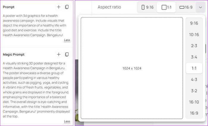 Tính năng thứ hai là khả năng lựa chọn đa dạng các độ phân giải ảnh. Tùy thuộc vào mục đích sử dụng, người dùng có thể cần ảnh ngang, dọc hoặc vuông. Ideogram đáp ứng nhu cầu này bằng cách cho phép tạo ảnh với 9 tỷ lệ kích thước khác nhau, phù hợp với mọi nền tảng hiển thị.