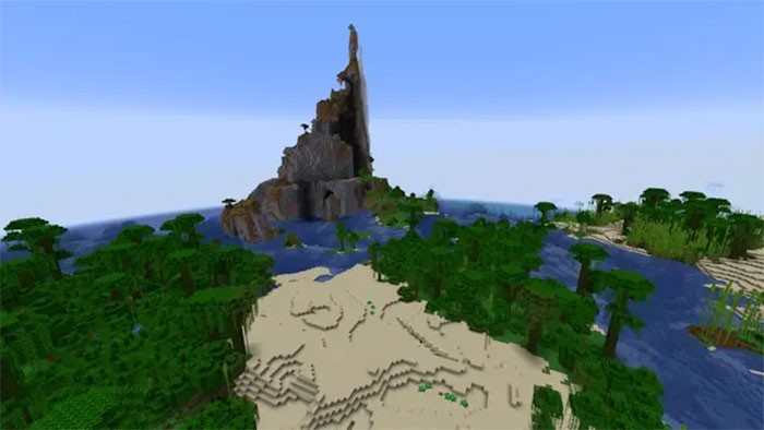 Seed này mang đến trải nghiệm khởi đầu game khác biệt khi người chơi xuất hiện tại một hòn đảo nhỏ, kế cận khu vực địa hình Windswept Savanna đầy ấn tượng. Khu vực này được đặc trưng bởi sự hiện diện của biome rừng rậm, tạo điều kiện lý tưởng để khai thác và sử dụng gỗ tre mới ngay từ những giai đoạn đầu.