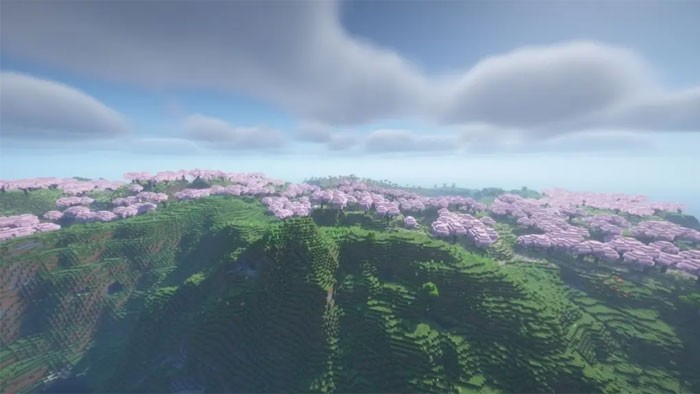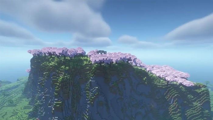 Vẻ đẹp của hoa anh đào luôn gây ấn tượng mạnh mẽ, đặc biệt khi chúng bao phủ một vùng rộng lớn như một dãy núi, mang đến những sắc màu tươi sáng. Trong Minecraft, seed này cho phép game thủ được tận hưởng khung cảnh tương tự với một ngọn núi vô cùng nổi bật.