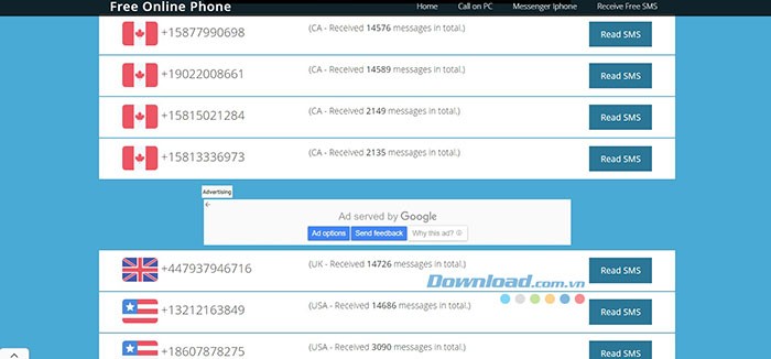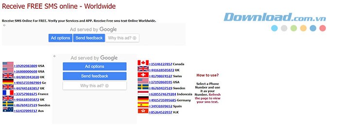 Hiện tại, trang web đang cung cấp tổng cộng 8 số điện thoại, phân bố tại nhiều quốc gia khác nhau, bao gồm Canada, Thụy Điển, Hoa Kỳ và Vương quốc Anh.