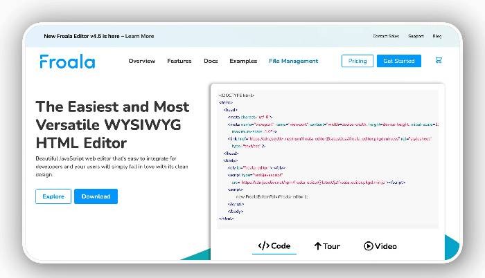 Froala Editor nổi tiếng nhờ thiết kế hiện đại, hiệu năng cao và bộ tính năng phong phú. Đây là một trình soạn thảo WYSIWYG cao cấp, kết hợp hoàn hảo giữa hiệu suất và giao diện đẹp mắt, lý tưởng cho các nhà phát triển muốn có trải nghiệm chỉnh sửa chuyên nghiệp.