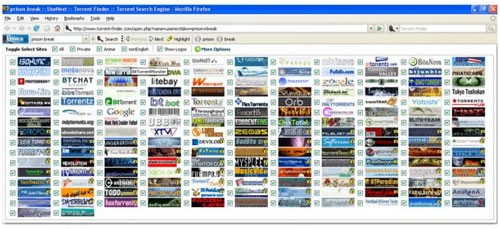 Torrent Finder Toolbar tổng hợp hơn 170 trang web khác nhau, cho phép bạn tìm kiếm trên toàn bộ các trang này hoặc chọn lọc một số trang web cụ thể. Bạn có thể thực hiện lựa chọn này bằng cách nhấp vào mũi tên cạnh thẻ "Search", một trang web mới sẽ mở ra để bạn chọn các trang web mong muốn.