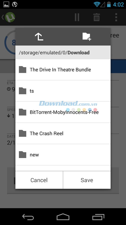 uTorrent cho phép lưu trữ dữ liệu trực tiếp lên thẻ nhớ SD, một giải pháp hữu ích cho các thiết bị Android phiên bản Google/KitKat có những hạn chế nhất định về thẻ SD.