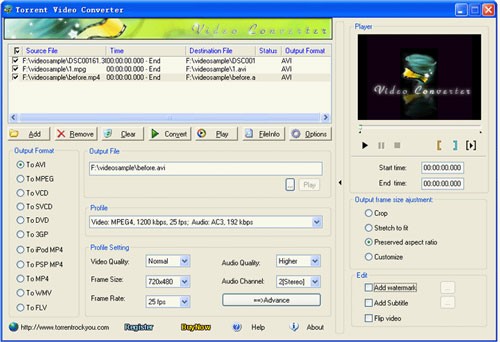 Torrent Video Converter 3.01 là một ứng dụng mạnh mẽ, chuyên dụng trong việc chuyển đổi các định dạng video khác nhau sang các chuẩn phổ biến như AVI, FLV, MPEG, VCD, SVCD, DVD, 3GP, iPod Mp4, PSP MP4, cùng với định dạng MP4, tương thích với nhiều thiết bị số.
