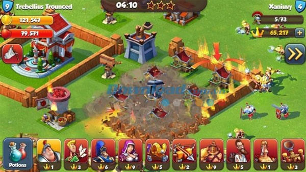 Trong quá trình chiến đấu, bạn có thể điều động vệ binh tấn công các công trình của đối phương bằng cách chạm vào công trình đó. Người chơi có thể thay đổi mục tiêu tấn công bằng cách chạm vào một công trình khác.