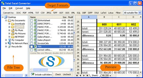Total Excel Converter thực hiện quá trình chuyển đổi một cách chính xác. Người dùng chỉ cần chọn tệp cần chuyển đổi và nhấn nút "Convert". Trình hướng dẫn của phần mềm sẽ hỗ trợ bạn thiết lập các thông số cần thiết (phần mềm sẽ tự động áp dụng các cài đặt tối ưu, nhưng bạn vẫn có thể tùy chỉnh theo yêu cầu).