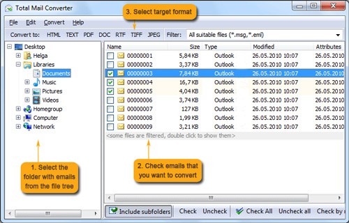 Total Mail Converter giúp bạn giải quyết triệt để vấn đề email tồn đọng, đồng thời lưu trữ chúng một cách khoa học và phù hợp với nhu cầu cá nhân. Bạn có thể chuyển đổi file MSG sang định dạng DOC để dễ dàng chỉnh sửa và làm việc với dữ liệu trong Microsoft Word.