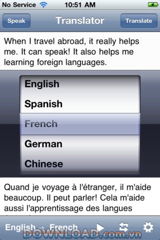 Ứng dụng này cho phép người dùng dịch một câu hoặc đoạn văn sang nhiều ngôn ngữ khác nhau, đồng thời lựa chọn giọng đọc tương ứng để nghe bản dịch.