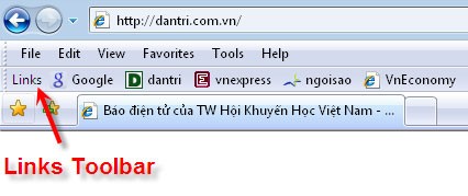 Bước 1: Kiểm tra xem thanh công cụ Links Toolbar đã được hiển thị trên trình duyệt của bạn hay chưa, như minh họa sau: