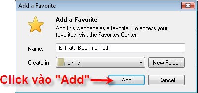 Bước 4: Lưu bookmark vào thư mục Links để Bookmarklet xuất hiện trên thanh công cụ Links Toolbar của trình duyệt.