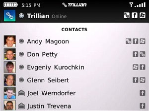 Trillian 1.0.0.220 for BlackBerry mang đến khả năng đăng nhập nhiều tài khoản cùng lúc trên một giao diện duy nhất. Ứng dụng này cho phép người dùng trò chuyện đồng thời qua các nền tảng phổ biến như AIM, ICQ, MSN, YAHOO và IRC.