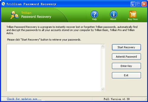 Nếu bạn quản lý nhiều tài khoản Trillian, Trillian Password Recovery sẽ giúp bạn khôi phục tất cả mật khẩu một cách nhanh chóng và dễ dàng. Chỉ một lần thực hiện, bạn sẽ lấy lại được quyền truy cập vào tất cả các tài khoản của mình.