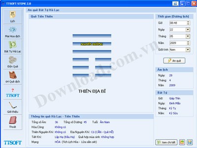 Phần mềm là công cụ tuyệt vời để tra cứu và tìm hiểu bản chất của những điều đang diễn ra xung quanh bạn, thông qua nội dung của 64 Quẻ Dịch.