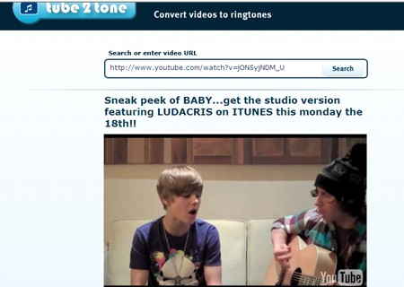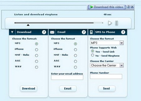 Tube2Tone cho phép bạn tạo nhạc chuông trực tuyến với thời lượng 40 giây ở các định dạng MP3, AAC, MMF, WAV hoặc 37 giây cho định dạng đặc biệt dành cho iPhone. Sau khi tạo, bạn có thể tải nhạc chuông về máy, chép vào điện thoại, gửi tặng bạn bè qua email hoặc gửi nhạc chuông qua tin nhắn SMS (tính năng này hiện chưa khả dụng tại Việt Nam).